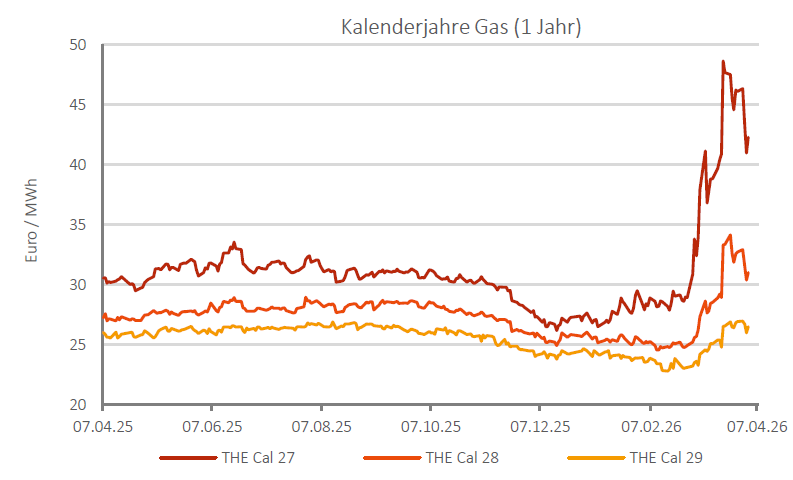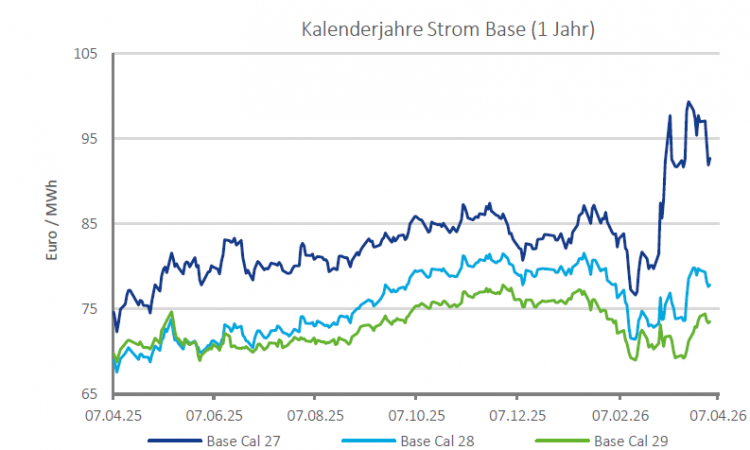 Auf der Terminkurve bewegen sich die Notierungen im Einklang mit dem restlichen Energiekomplex. Die Hoffnung auf eine Waffenruhe und ein Abkommen sorgten ebenfalls im Strom für deutliche Abgaben. Im Wochenvergleich gab das Cal 27 Base 4,4 % auf 92,72 €/MWh ab. Bei den Folgejahren zeigt sich ein ähnliches Bild, auch wenn die Entwicklung schwächer ausfällt. Das Cal 28 Base gab 2,1 % auf 77,86 €/MWh ab, während das Cal 29 Base lediglich 0,8 % auf 73,58 €/MWh verlor.