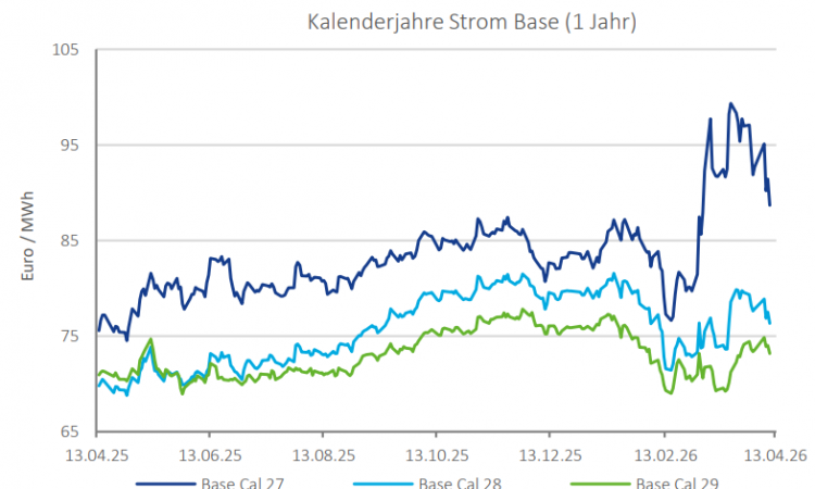 Auf der Terminkurve bewegen sich die Notierungen im Einklang mit dem restlichen Energiekomplex, wobei die EUAs noch leicht stützend wirkten. Die Waffenruhe sorgte auch bei den Strompreisen für deutliche Verluste. Im Wochenvergleich gab das Cal 27 Base 6,8 % auf 88,69 €/MWh ab. Bei den Folgejahren zeigt sich ein ähnliches Bild, auch wenn die Entwicklung schwächer ausfällt. Das Cal 28 Base gab 3,2 % auf 76,35 €/MWh ab, während das Cal 29 Base noch 2,2 % auf 73,17 €/MWh verlor.